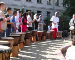 Die erdige Wirkung und der Zauber ihrer Trommelklänge berührten mich unwiderstehlich. Ich reiste nach Afrika, lernte die Musik, Kultur und Gastfreundschaft lieben und wurde Teil einer großen afrikanischen Familie.